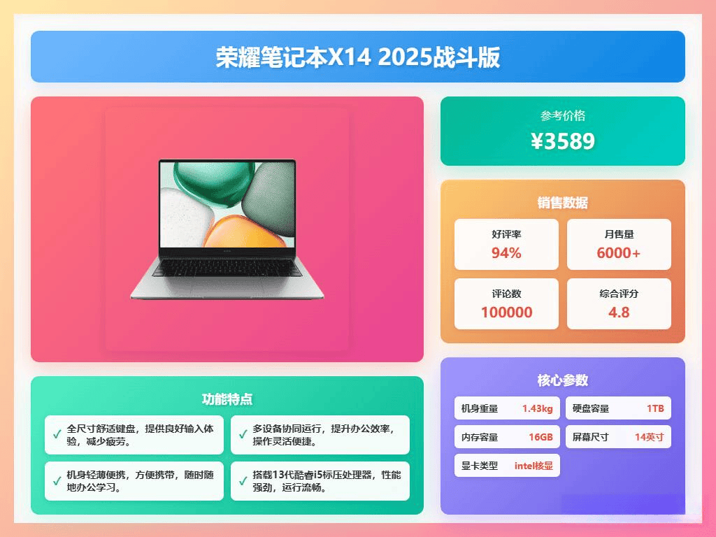 回顾全文,我们在2026年的时间节点下,深入探讨了荣耀笔记本电脑的选购要点,从CPU性能、屏幕素质、内存和存储、接口扩展性到续航能力,以及荣耀特有的智慧互联功能,都进行了详细的解读。希望这一些信息能帮助您更好地了解不同配置对实际使用体验的影响,从而做出更明智的购买决策。